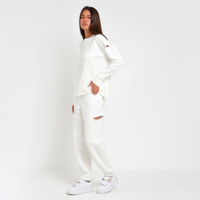 Брюки (джоггеры) женские с разрезами MIST р. 48 (рост 165), молочный — Характеристики