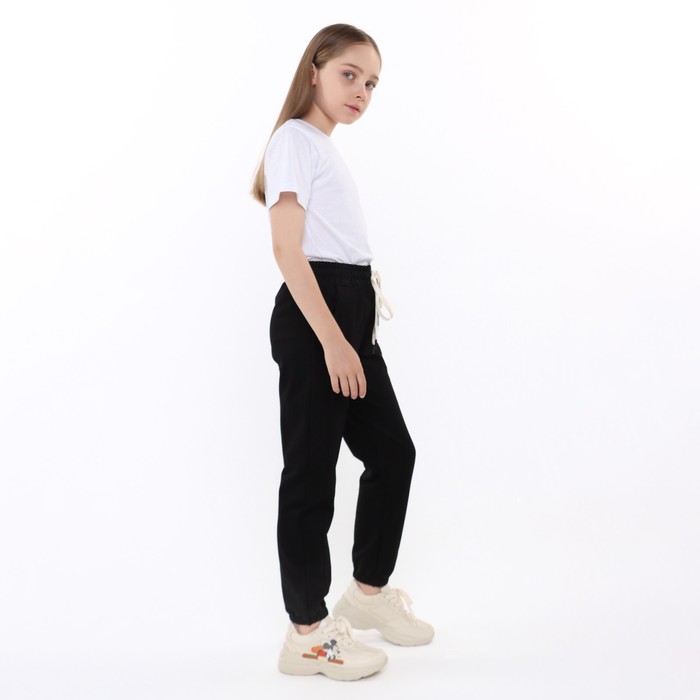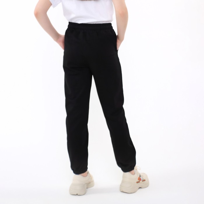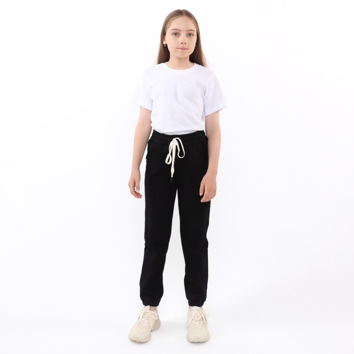 Брюки спортивные для девочек, цвет чёрный, рост 152 см