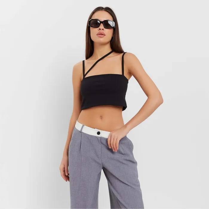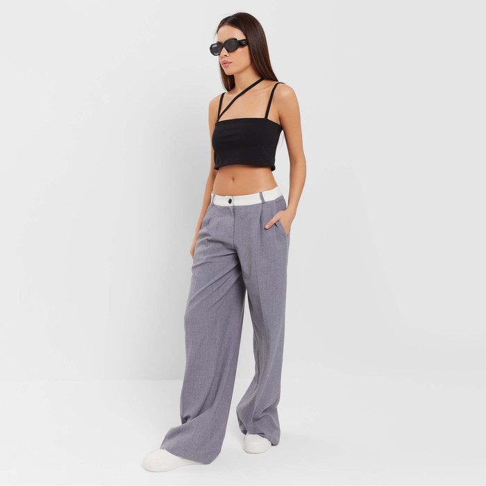 Брюки женские с контрастным поясом MIST р.44, серый — Характеристики