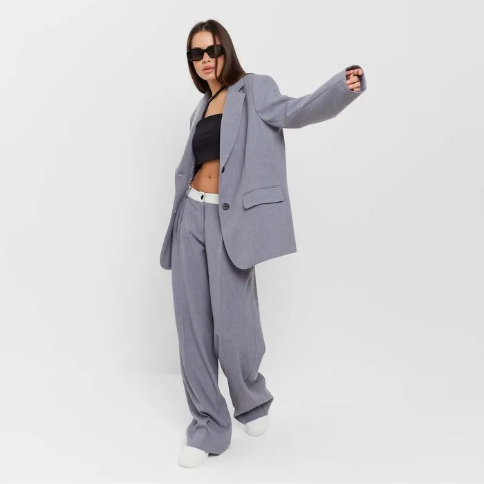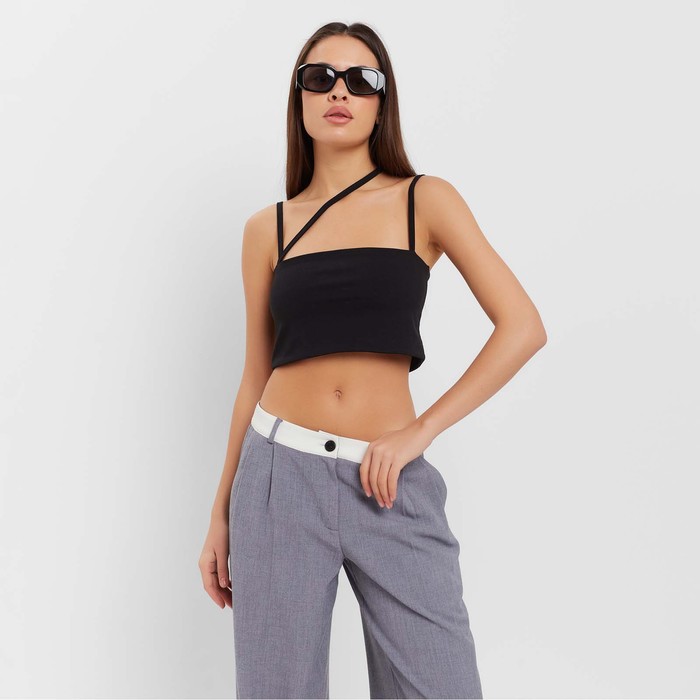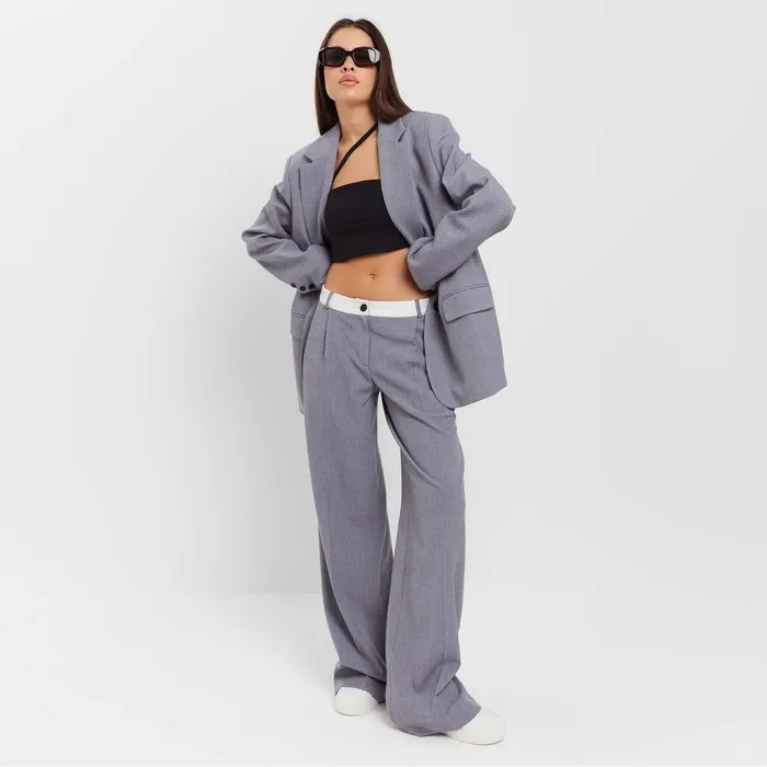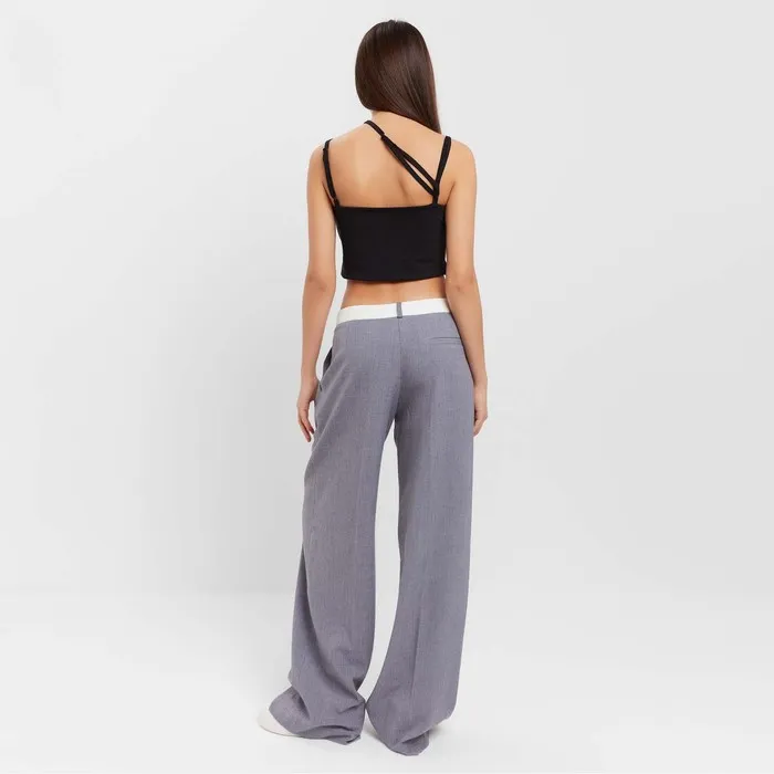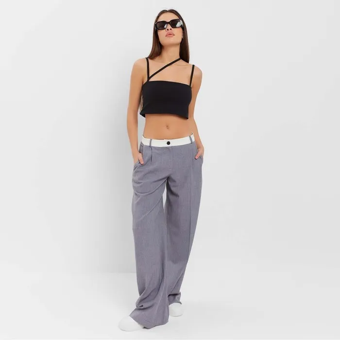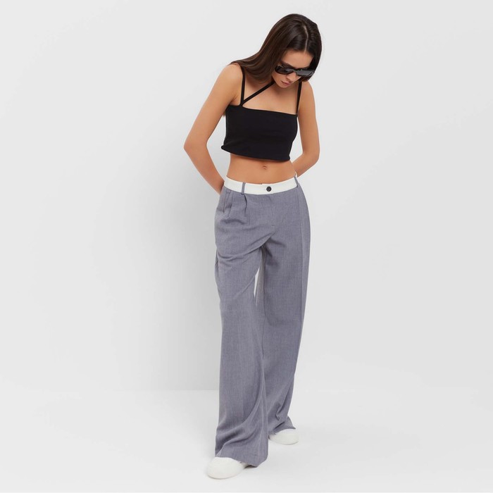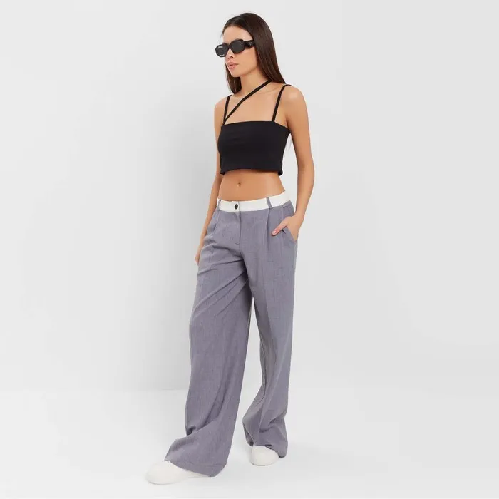 Брюки женские с контрастным поясом MIST р.48, серый — Характеристики