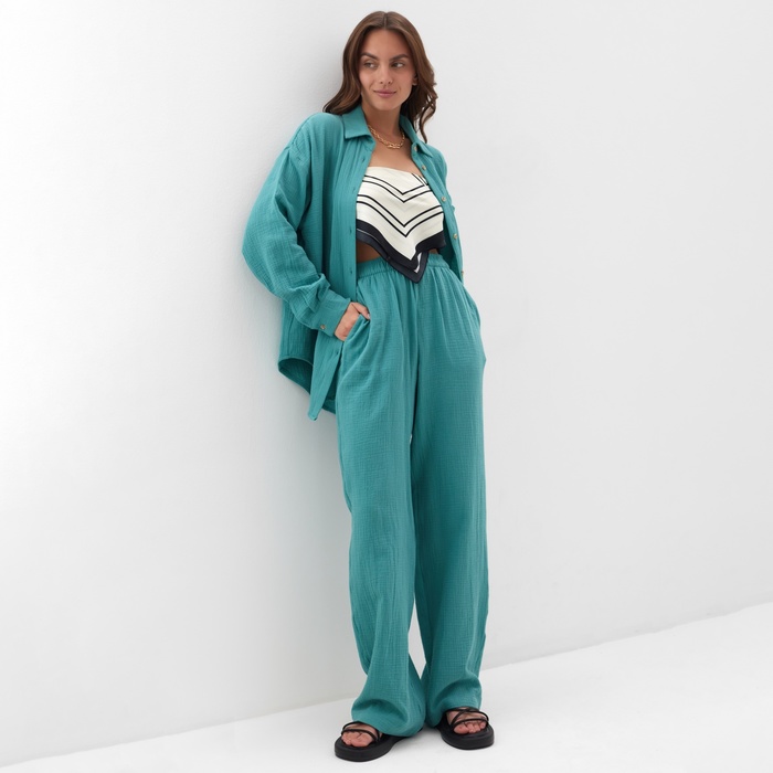 Брюки женские, свободного кроя MIST Muslin размер L, цв. бирюзовый — Характеристики