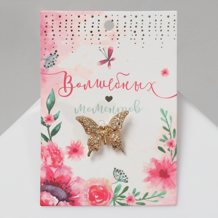 Выполненная из металла с золотой фурнитурой, стразами и тематикой насекомых, она идеально подходит для свадебных мероприятий. Бижутерия дополняется открыткой, что делает её утончённым подарком, несущим пожелания и эмоции.