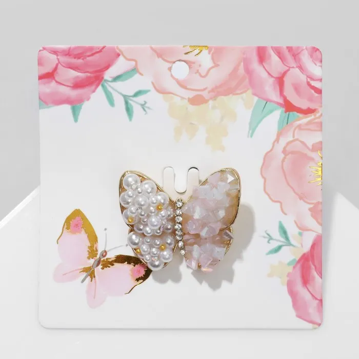 - Изысканный дизайн: бабочка, украшенная стразами и жемчугом, символизирует легкость и красоту, добавляя вашему образу неповторимый шарм.