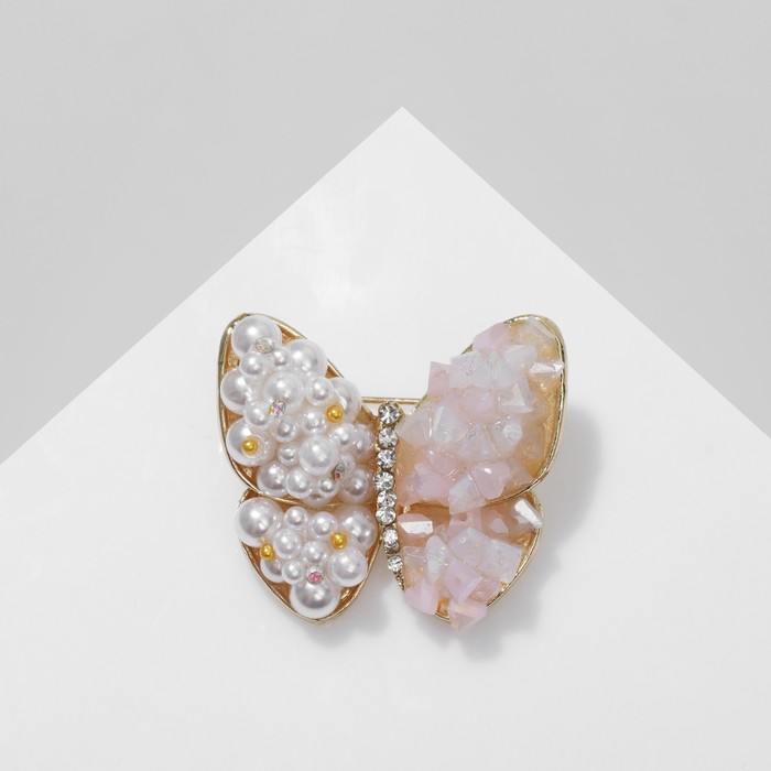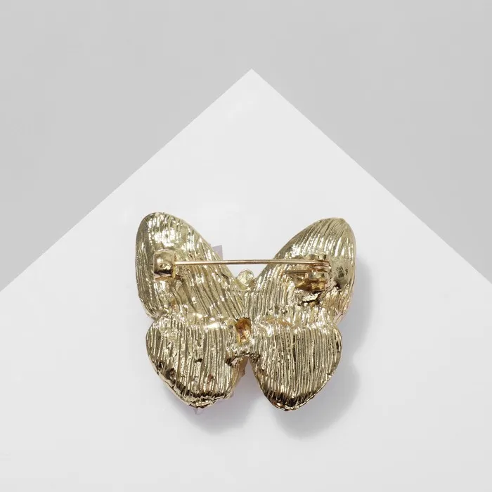 Брошь «Бабочка» друза, цвет бело-розовый в золоте — Характеристики