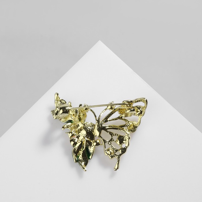 Брошь «Бабочка» флора, цветная в золоте — Характеристики