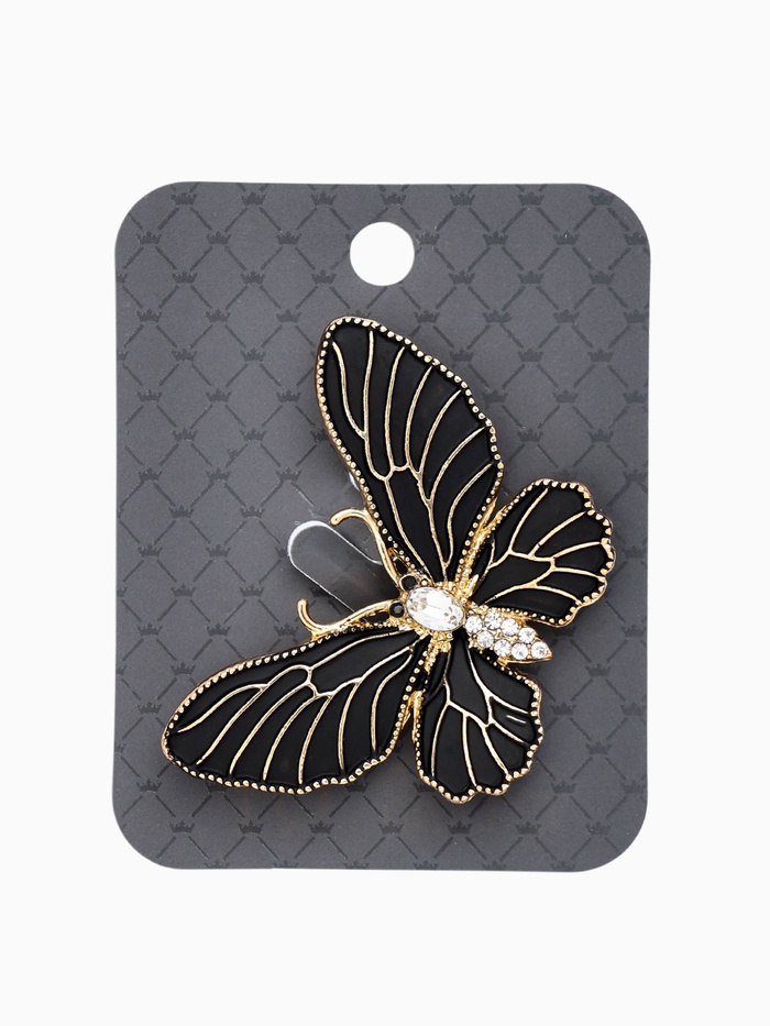 Брошь «Бабочка» матовая, в жилки, чёрная в золоте — Характеристики
