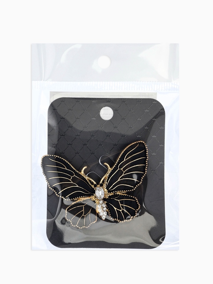 Закрепите на сердце маленькую красавицу-бабочку! Черная бабочка в золотом оформлении идеально подчеркнет женственность и утонченность образа. Созданная из высокопрочного металла и декорированная черной эмалью, эта брошь поражает своей простотой и изяществом одновременно.