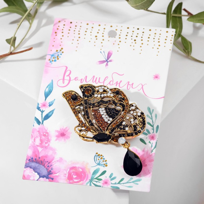 Изготовленная из качественного металла с вставками из стекла и страз, эта брошь сочетает в себе прочность и красоту. Каждый элемент тщательно продуман, что делает её не только стильным аксессуаром, но и символом вашей индивидуальности. Брошь также представлена с открыткой, что делает её отличным подарком для близких и друзей.