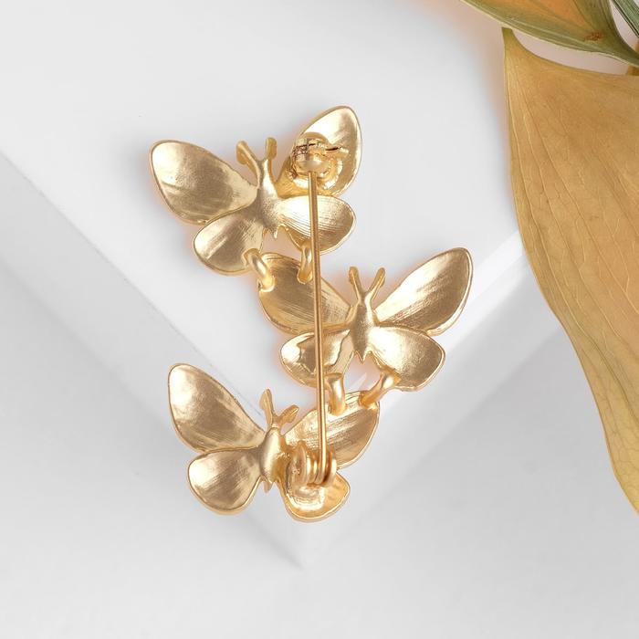 Три изящные бабочки, выполненные в матовом золотом оттенке, создают эффект легкости и воздушности, который украсит любой образ. Эта брошь – тонкое сочетание элегантности и женственности, способное подчеркнуть индивидуальность и добавить утончённости в повседневный или праздничный наряд.
