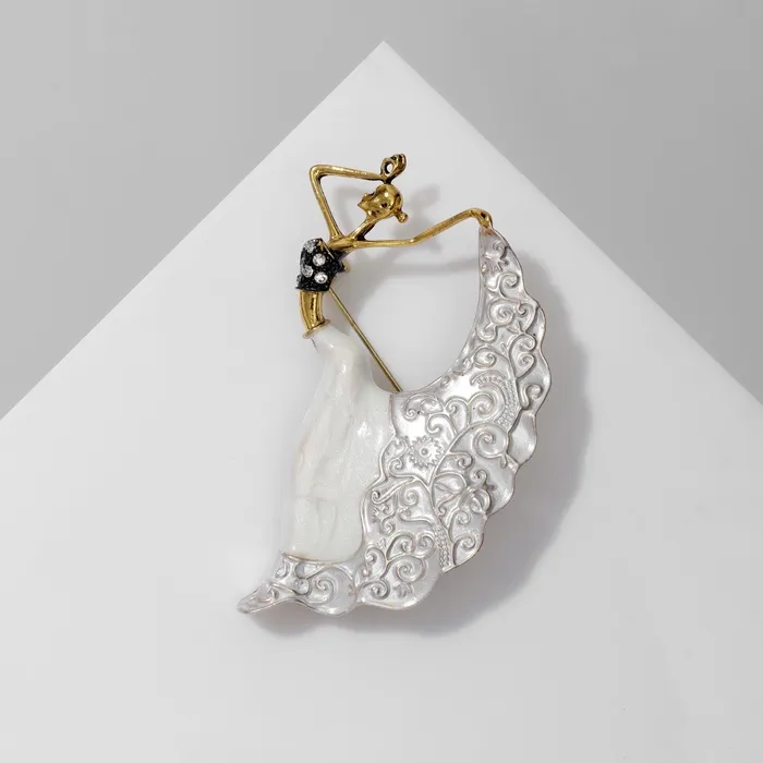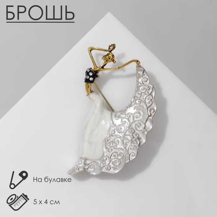 Брошь «Балерина» драма, цвет серый в чернёном золоте — Характеристики