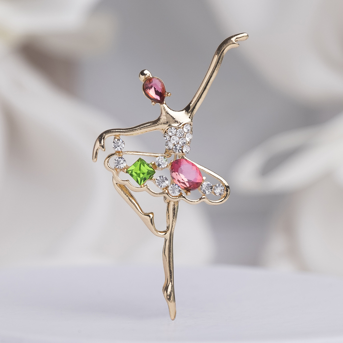 Брошь «Балерина на сцене», зелёно-малиновая в золоте