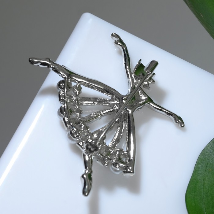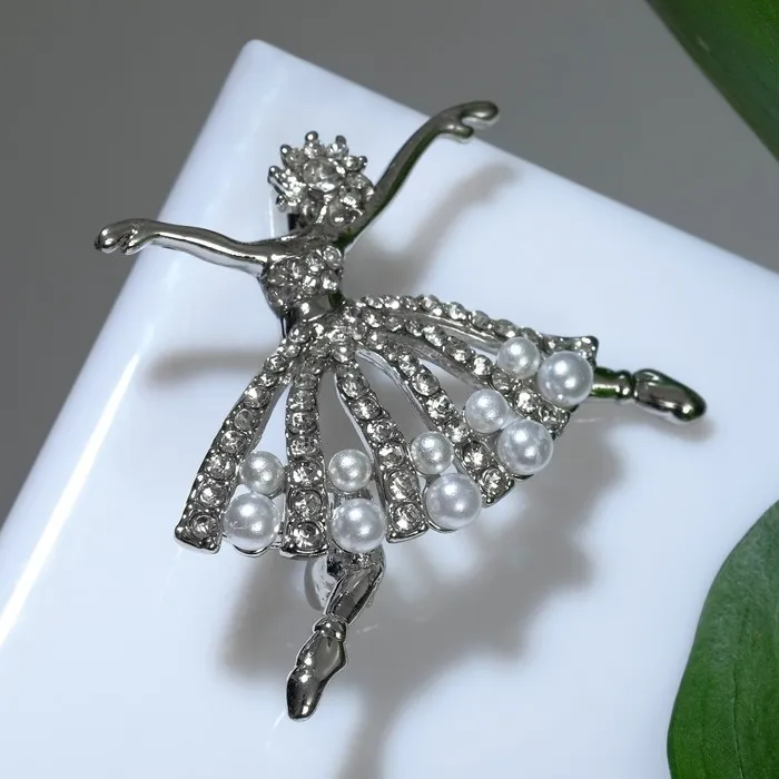 Брошь «Балерина» с бусинками, цвет белый в серебре — Характеристики
