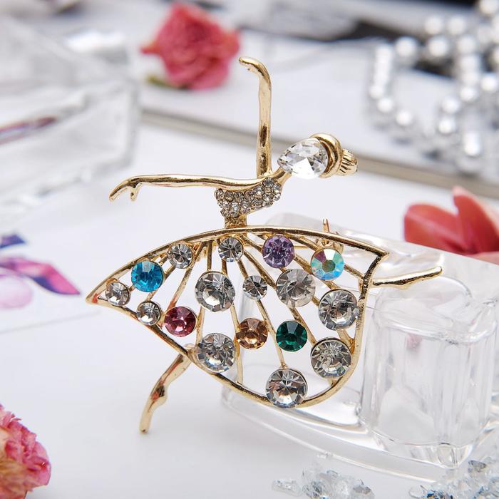 Брошь «Балерина» в платье, цветная в золоте — Характеристики