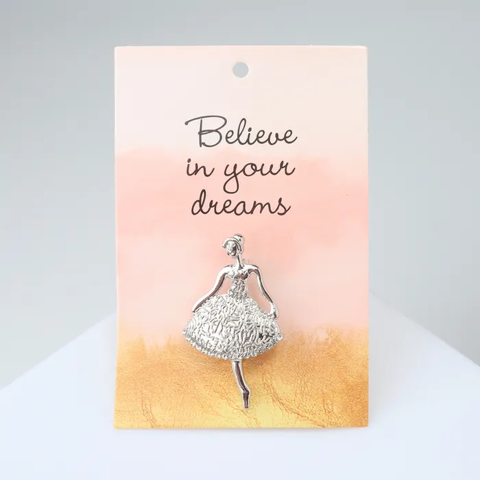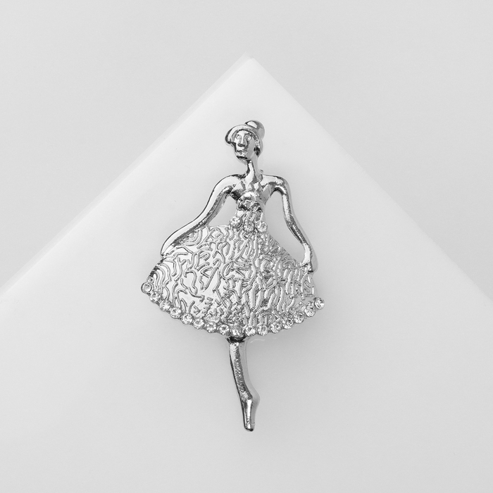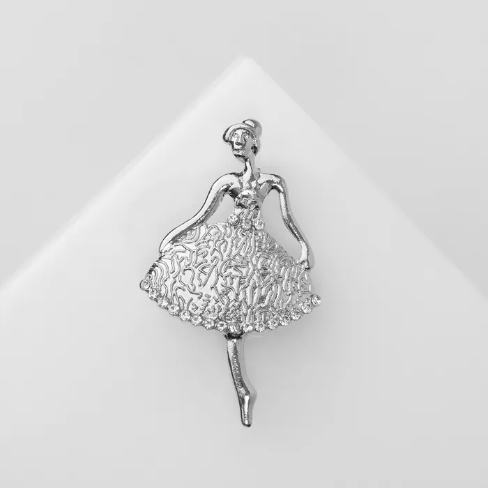 Представляем вашему вниманию изысканную брошь в виде балерины, которая станет настоящим украшением вашей коллекции аксессуаров. Элегантный дизайн, выполненный из металла с серебряным покрытием, и белые стразы делают эту брошь уникальной и стильной, идеально подходящей для женщин и девочек.