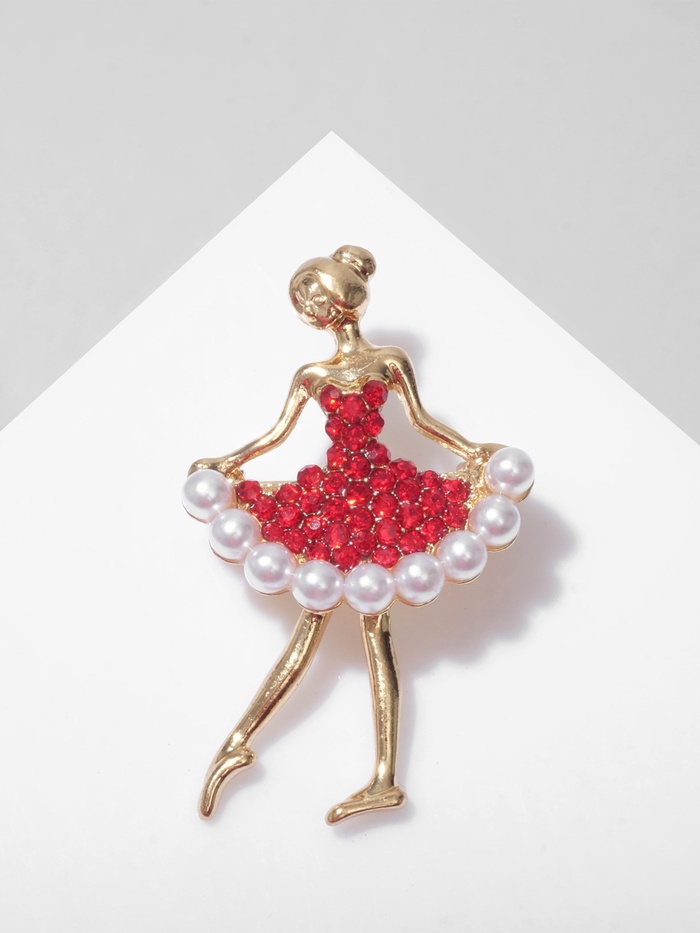 Брошь «Балеринка», цвет красно-белый в золоте — Характеристики