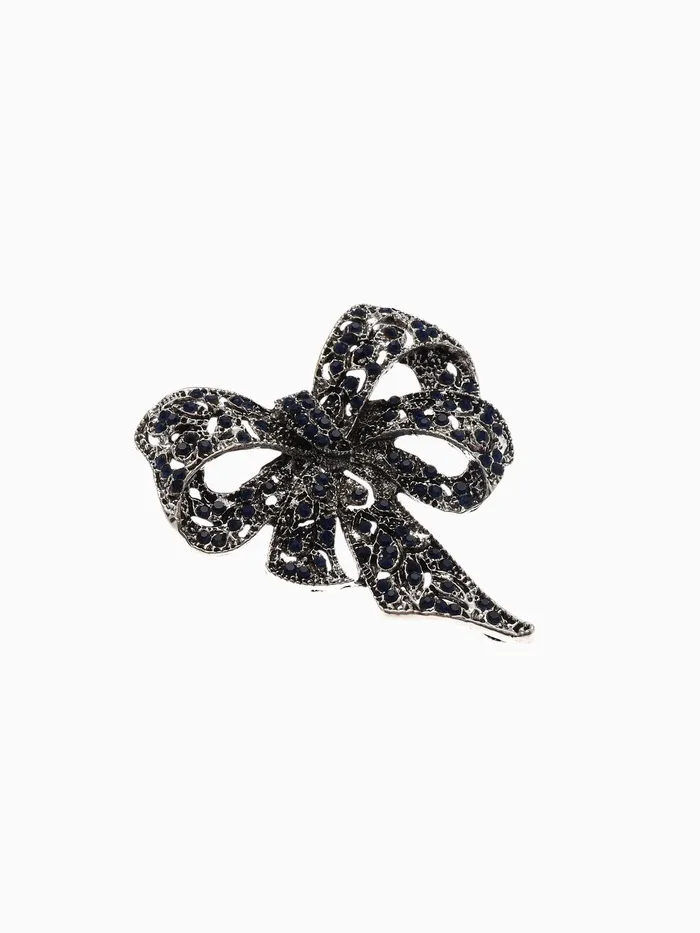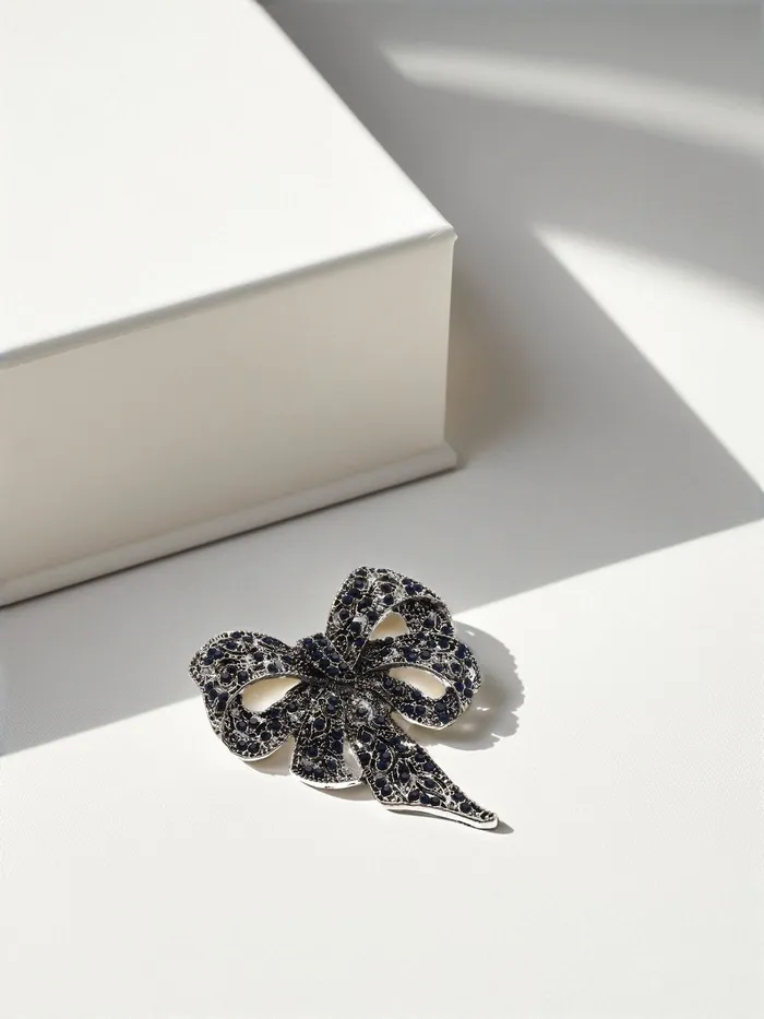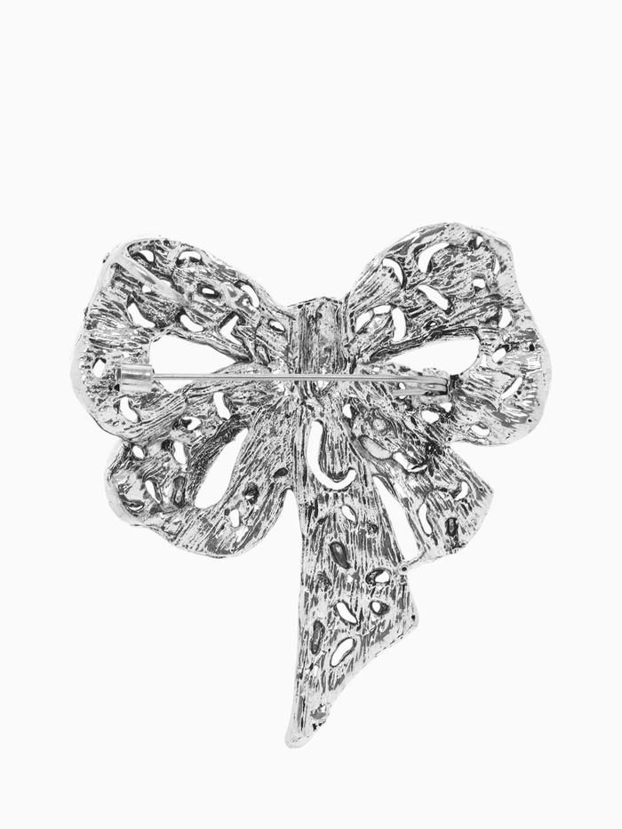 Брошь «Бант» узорчатый, цвет бело-синий в чернёном серебре — Характеристики