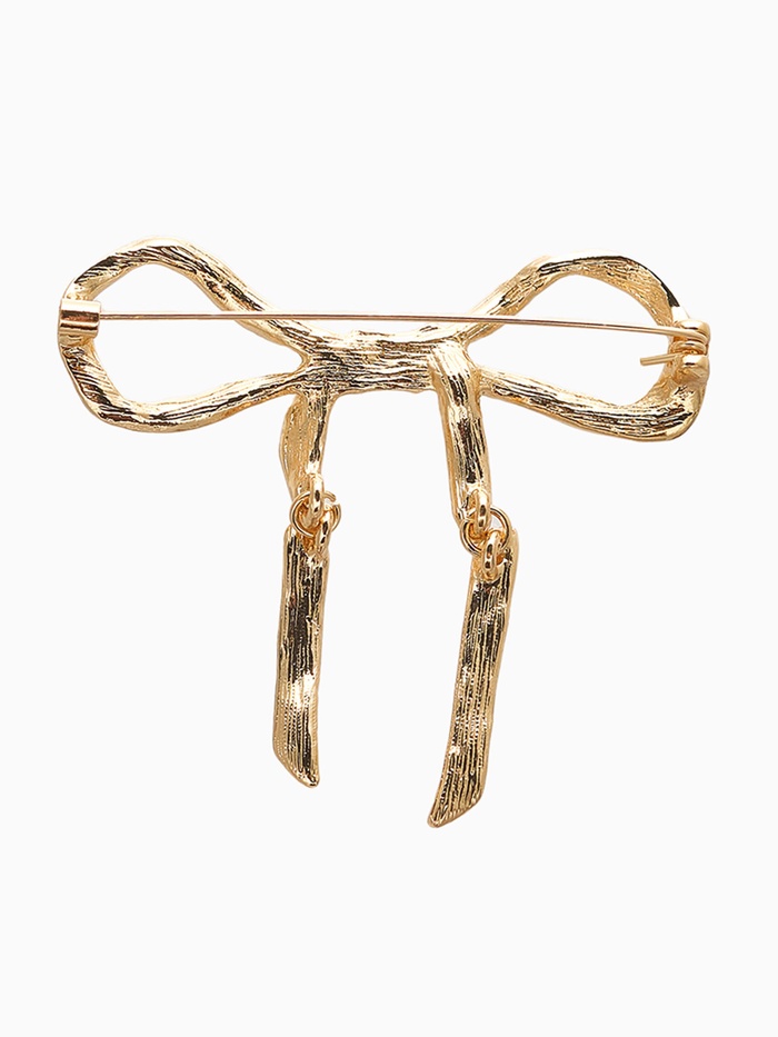 Золотистая брошь в форме изящного бантика воплощает нежность и утонченность, создавая гармоничный акцент в женском образе. Длина 6,2 см позволяет украшению быть заметным, но при этом не перегружать общий стиль, добавляя лёгкую элегантность и изысканность.