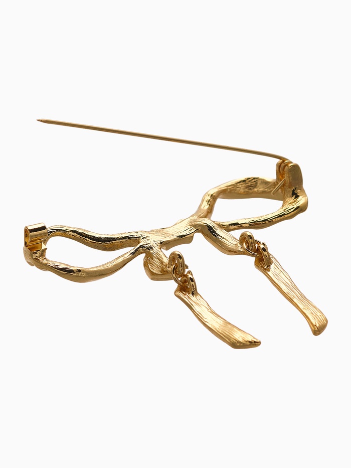 Металлическое основание с золотистым покрытием придаёт изделию прочность и благородный блеск, подчёркивая его высокое качество и долговечность. Отсутствие вставок сохраняет минимализм и чистоту линий, что делает брошь универсальным аксессуаром для разных случаев и нарядов.