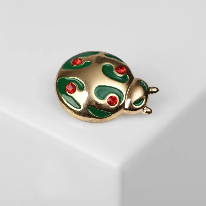 Откройте для себя очарование и радость с этой великолепной брошью в виде божьей коровки, которая станет ярким акцентом в вашем образе. Красно-зелёные цвета в сочетании с тёмным золотом создают гармоничное и запоминающееся сочетание, которое обязательно привлечёт внимание окружающих. Длина броши составляет всего 3 см, что делает её идеальной для повседневного ношения и особых случаев.