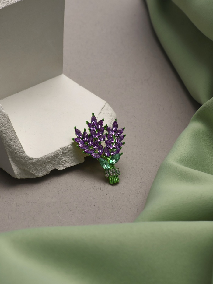 Погрузитесь в мир изящества и утончённости с этой великолепной брошью в виде букета лаванды. Каждый элемент этого аксессуара создан, чтобы подчеркнуть вашу индивидуальность и добавить нотку романтики в ваш образ. Сиреневый цвет, обрамленный золотом, напомнит о летних полях, наполненных цветами, и станет ярким акцентом в вашем гардеробе.