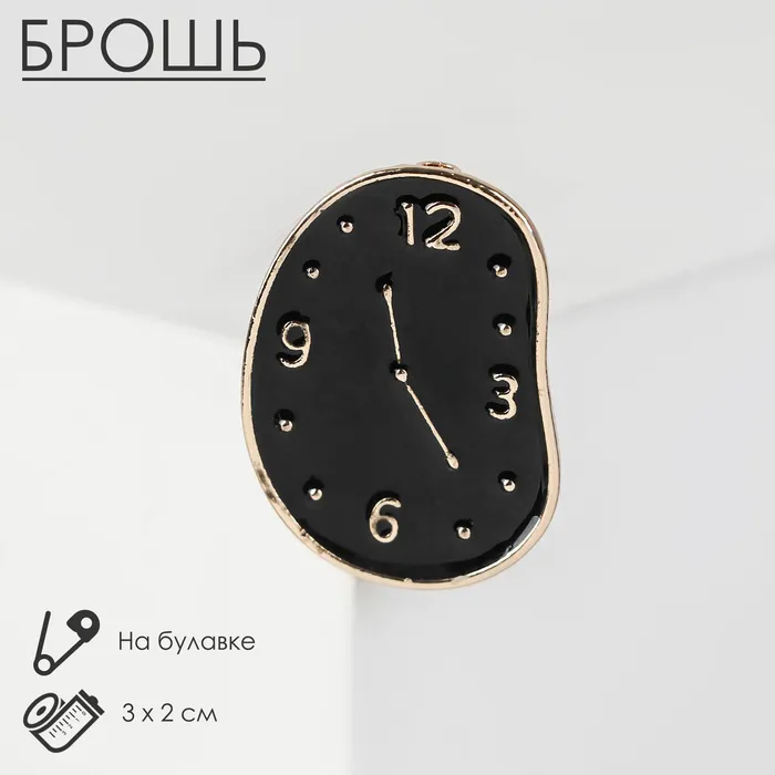 Брошь «Часы» Дали, цвет чёрный в золоте — Характеристики