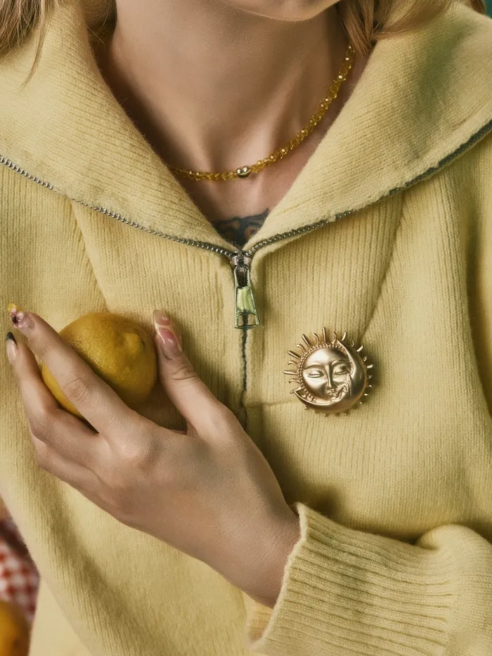 Брошь «День и Ночь», цвет матовое золото — Характеристики