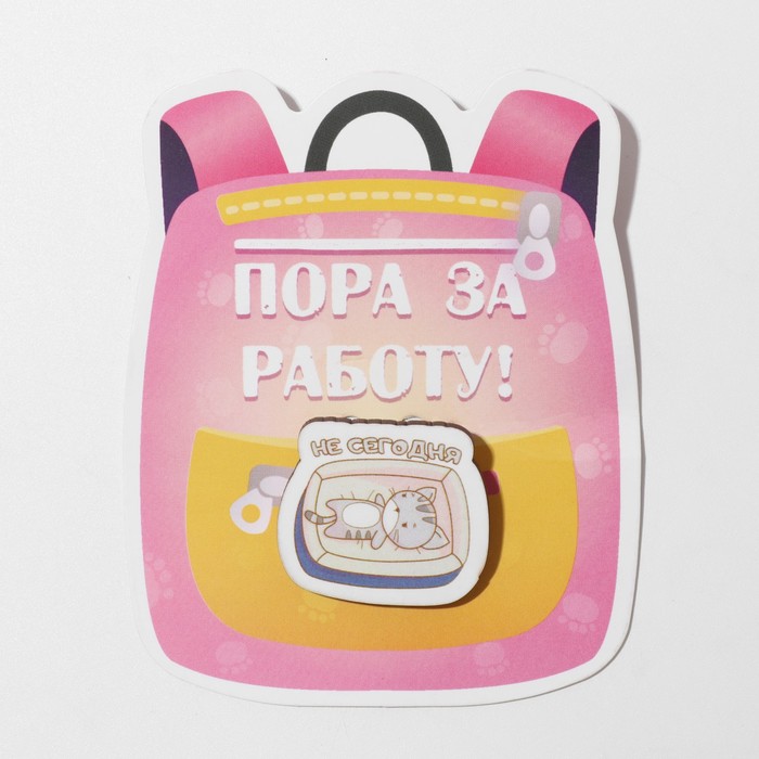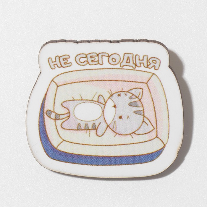 Брошь деревянная «Котик» устал, цветная — Характеристики