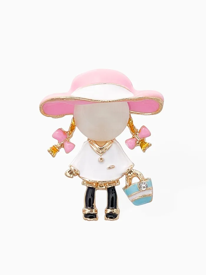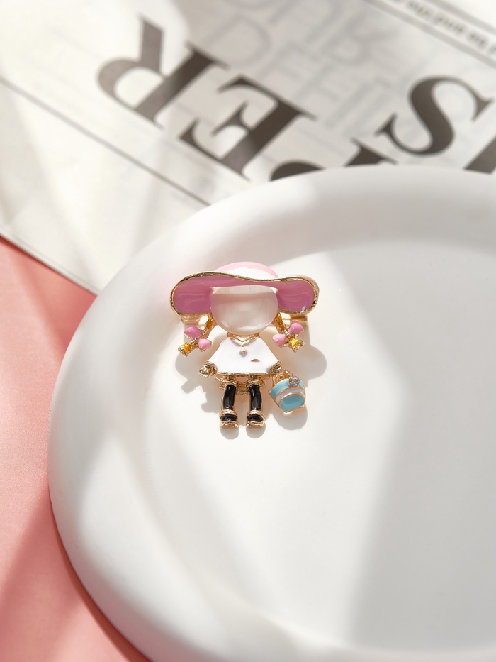 Брошь «Девочка» в шляпке, цветная в золоте — Характеристики