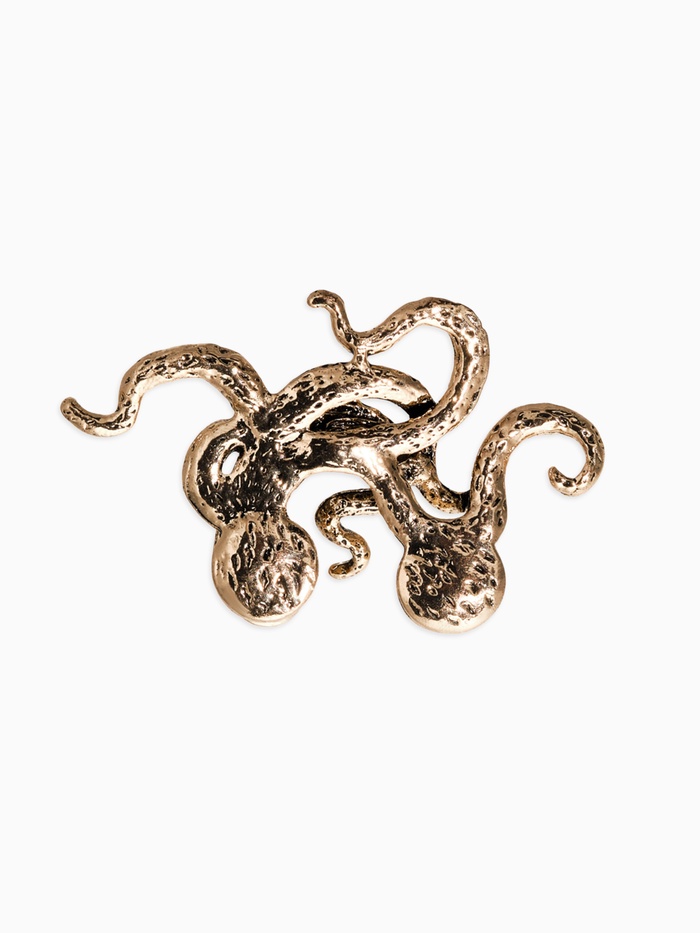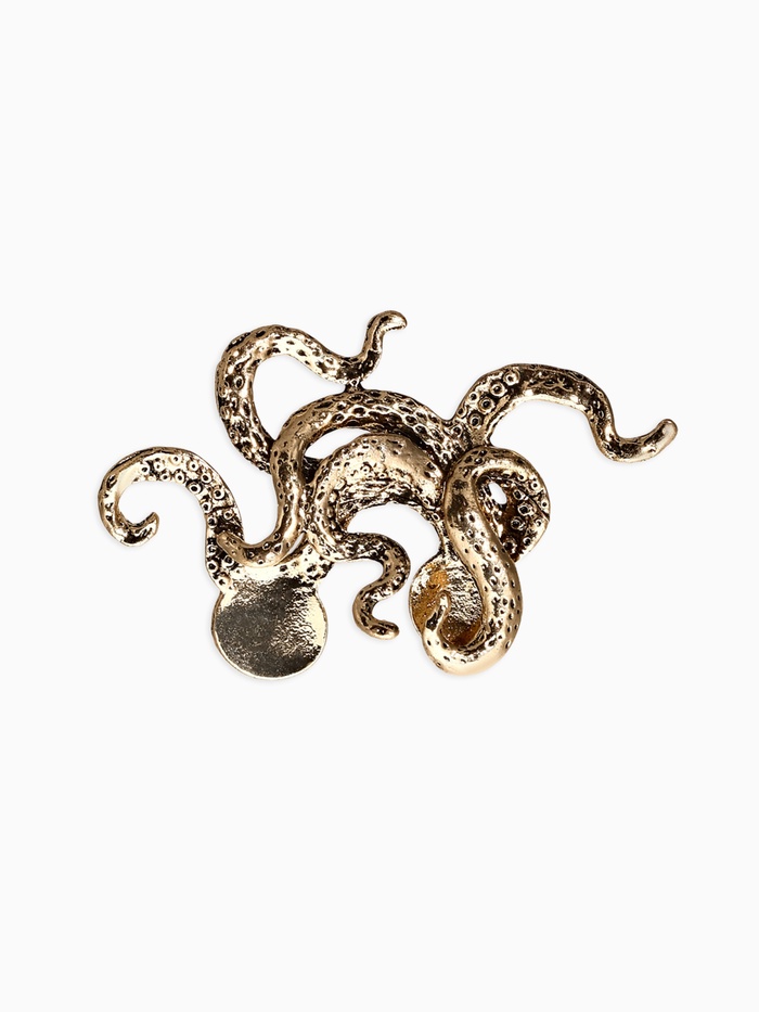 Погрузитесь в таинственную темноту морских глубин с мистической брошью «Осьминог» — грозным символом мрачных вод, исполненном в загадочном черненом золоте. Его щупальца словно скользят сквозь ткань одежды, переплетаясь и формируя коварный узор вечной тьмы океана. Брошь отражает тайны подводного царства, пробуждая чувства опасности и магии древних легенд о гигантских существах моря.