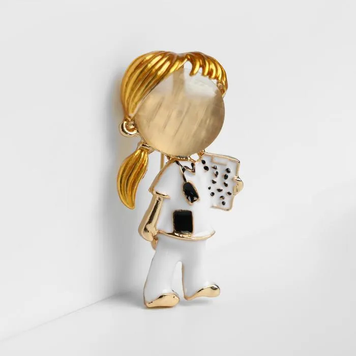 Вдохновляющая брошь в виде девочки-врача — это не просто украшение, а символ заботы и преданности профессии. С длиной всего 4 см, она станет ярким акцентом в вашем образе, подчеркивая вашу индивидуальность и профессионализм. Выполненная из металла с золотым покрытием и украшенная искусственным камнем и эмалью, эта брошь идеально подойдет для медработников, которые хотят выразить свою гордость за выбранную профессию.