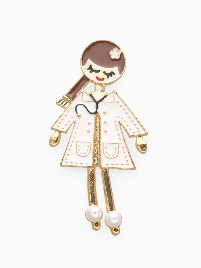 - Стильный и уникальный дизайн: брошь в виде девушки-доктора добавляет игривости и креативности в ваш образ.