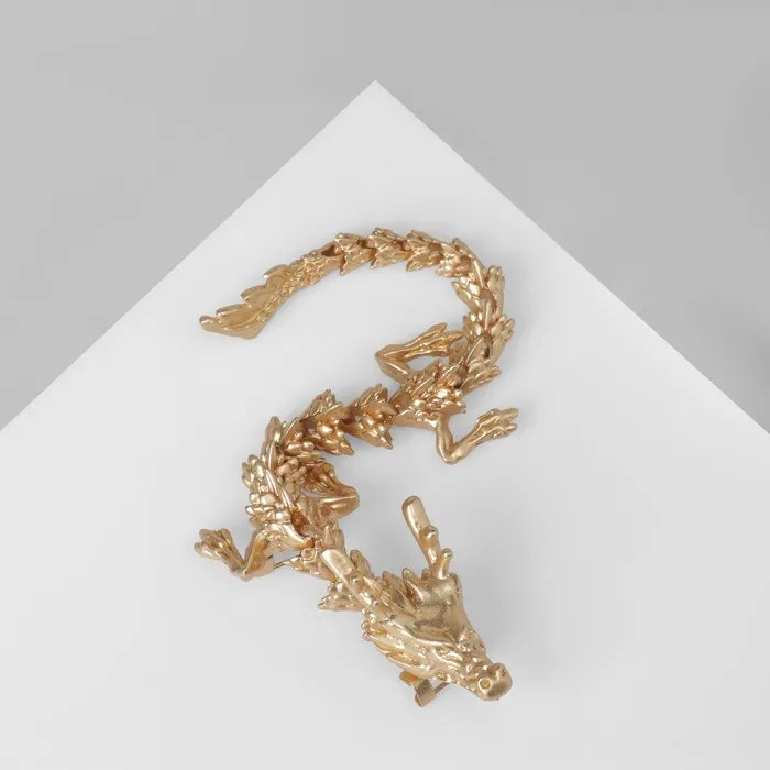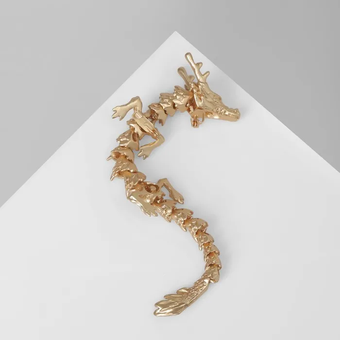 Брошь «Дракон» длинный подвижный, цвет матовое золото — Характеристики