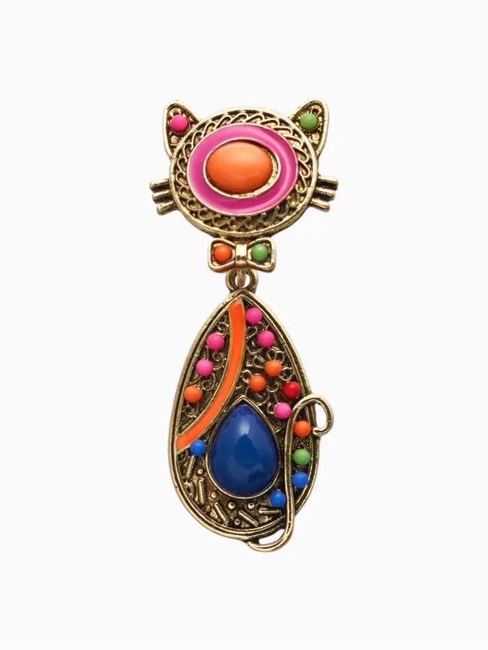 Брошь этника «Кошка радужная», цветная в чернёном золоте — Характеристики