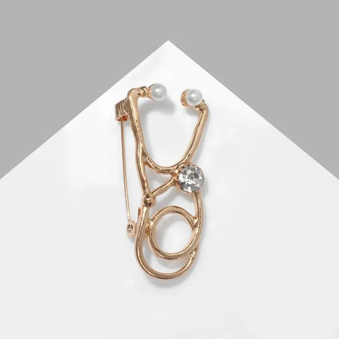 Изящная брошь в форме фонендоскопа — тонкий знак признательности и уважения к медицинской профессии. Белоснежные оттенки искусственного жемчуга в сочетании с золотистой металлической основой создают элегантный и современный образ, который подчеркнёт профессионализм и индивидуальность каждого медработника.