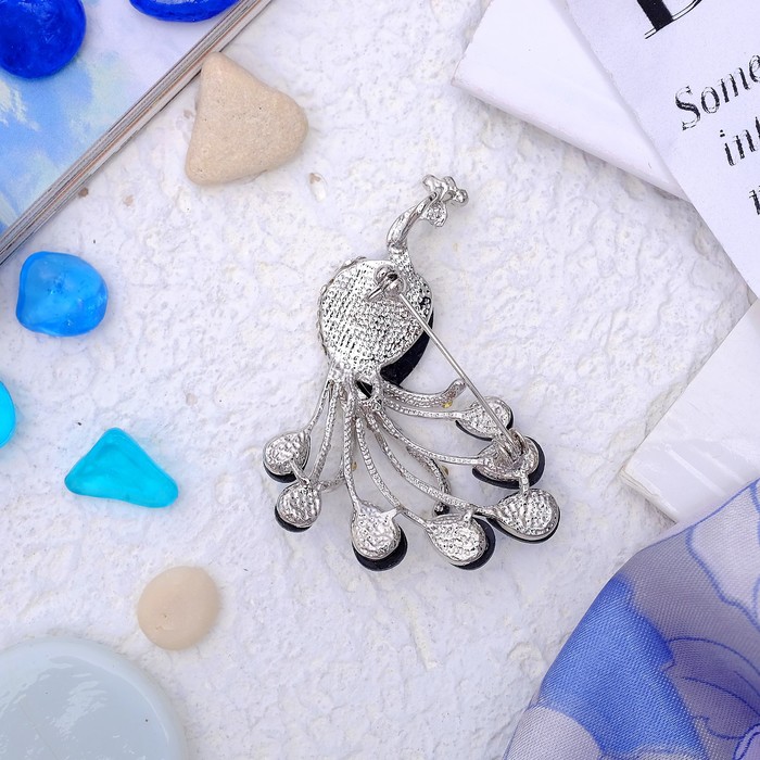 Брошь «Павлин» из серии «Галиотис» покорит сердце каждой поклонницы ювелирных украшений своей утонченностью и оригинальностью дизайна. Изготовленная из металла с серебряной фурнитурей, брошь привлекает внимание насыщенным зеленым цветом и блестящими стразами, создающими эффект роскоши и элегантности. Уникальной особенностью изделия является использование натуральной морской раковины, покрытой защитной эпоксидной смолой, благодаря чему узор павлиньего хвоста приобретает особую выразительность и объем.