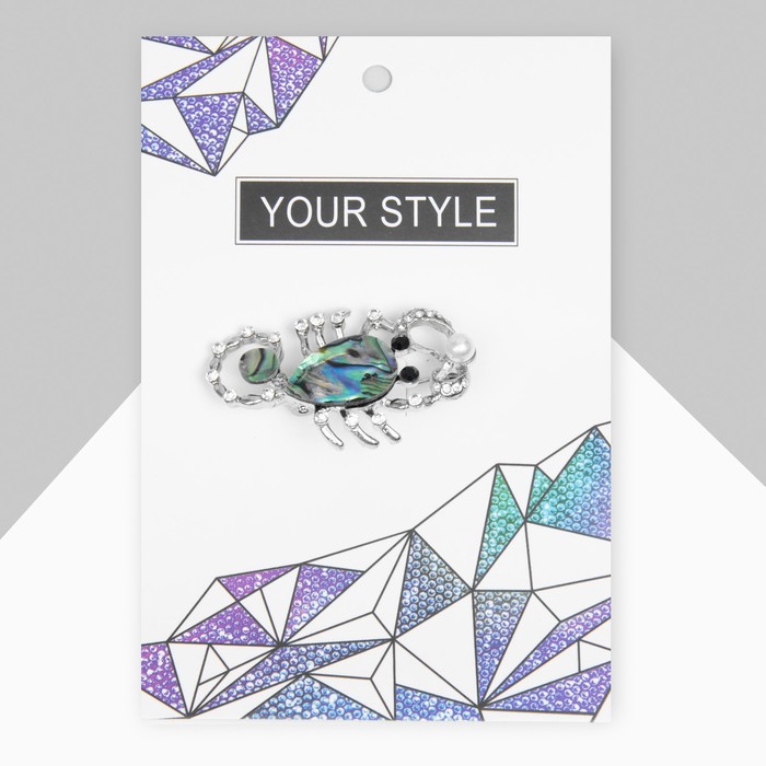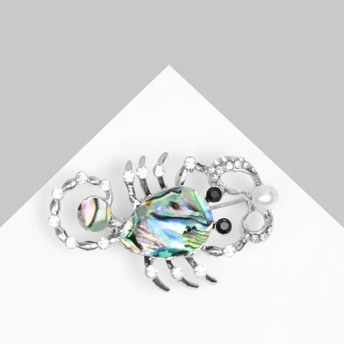 Брошь «Галиотис» скорпион с жемчужиной, цвет зелёный в серебре — Характеристики