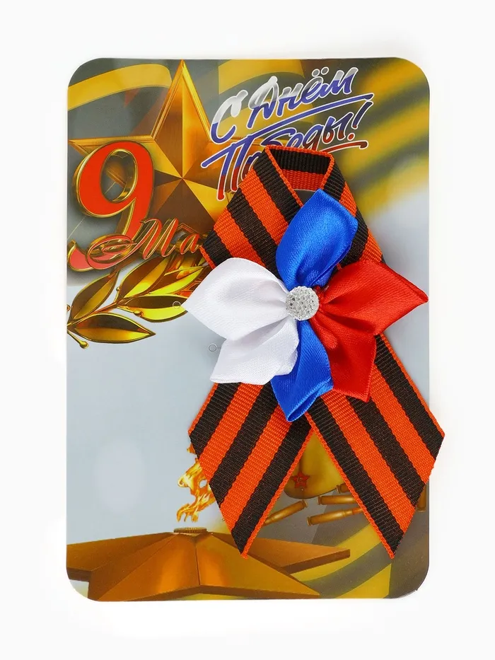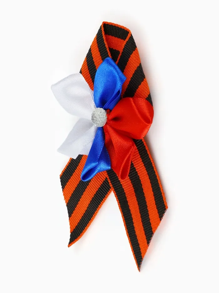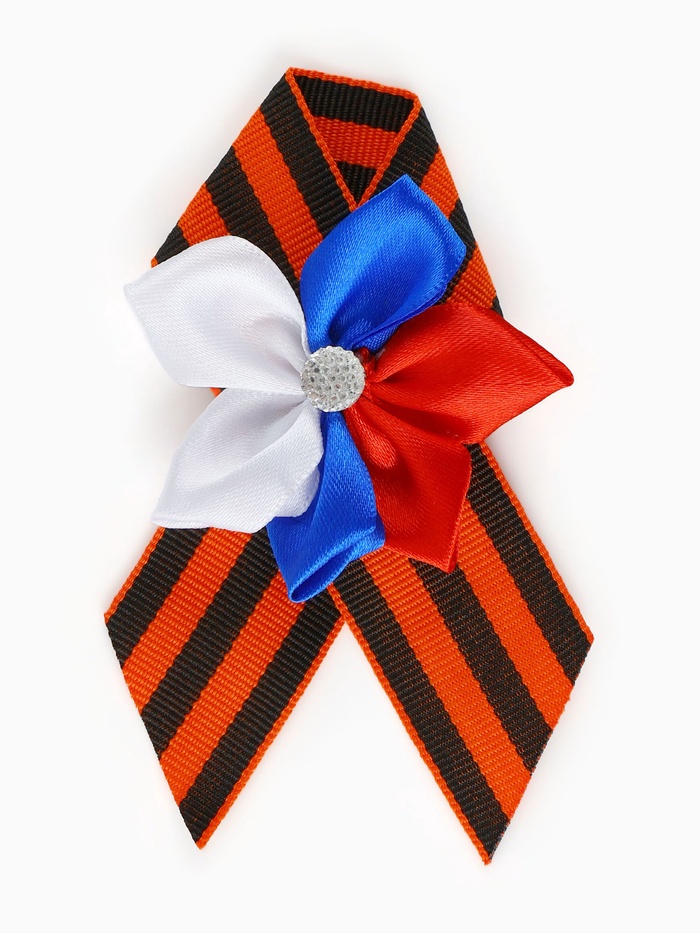 Брошь - георгиевская лента с цветком "9 мая", цветок триколор — Характеристики
