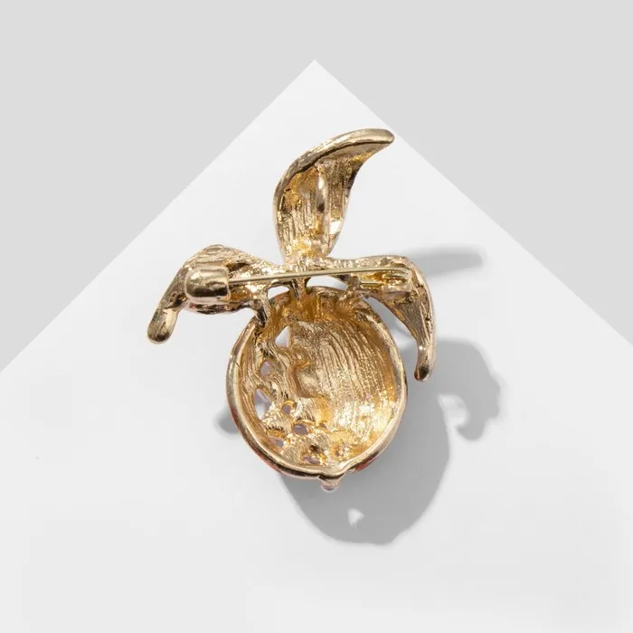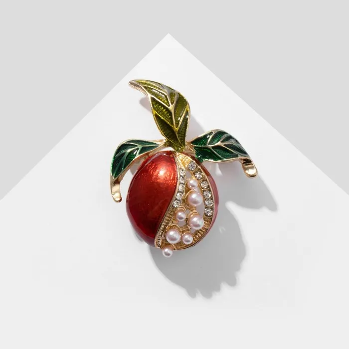 Яркая брошь в форме граната с золотистой основой станет выразительным аксессуаром для женщины любого возраста. Размер 6,1 см подчёркивает детализацию и насыщенность цветовой гаммы, объединяющей бордовые, красные и зелёные оттенки.