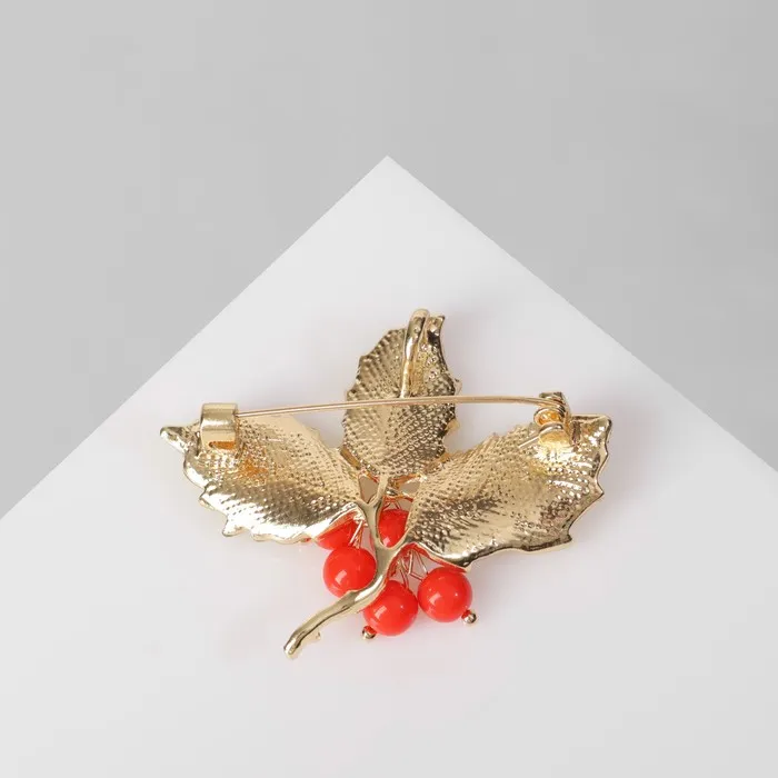 Брошь «Ягоды» костяника, цвет красно-зелёный в золоте — Характеристики