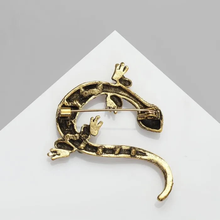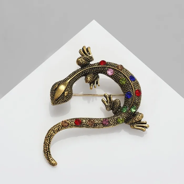 Брошь «Ящерица в стразах» цветная в чернёном золоте — Характеристики