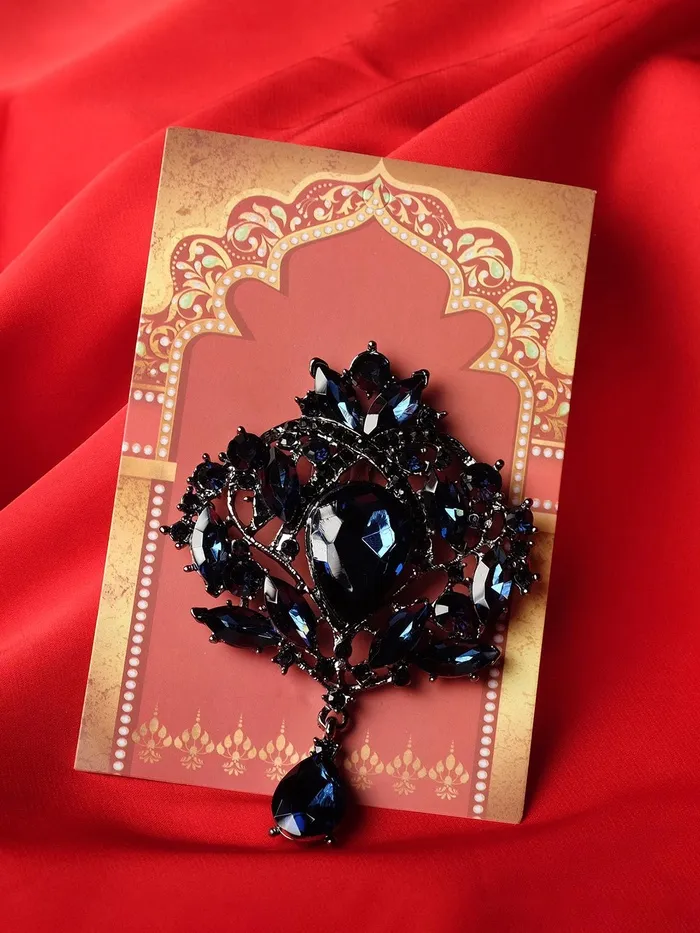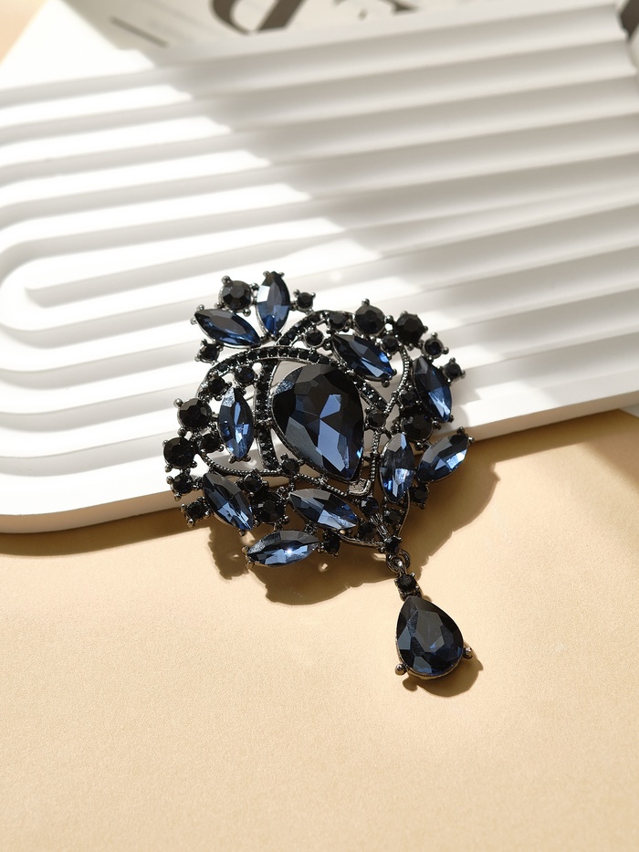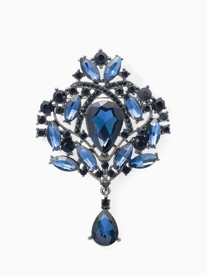 Откройте для себя элегантность и утонченность с этой великолепной брошью, которая станет настоящим акцентом в вашем образе. Синяя палитра стразов в сочетании с серым металлом создает впечатляющий контраст, который привлекает взгляды и подчеркивает вашу индивидуальность.