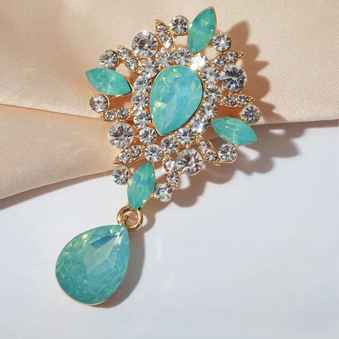 Изготовленная из прочного металла и украшенная стразами и стеклом, она сочетает в себе красоту и долговечность. Элегантный дизайн с золотой фурнитурой делает брошь универсальным подарком для мам, бабушек, дочерей и внучек, добавляя яркие акценты в их стиль.
