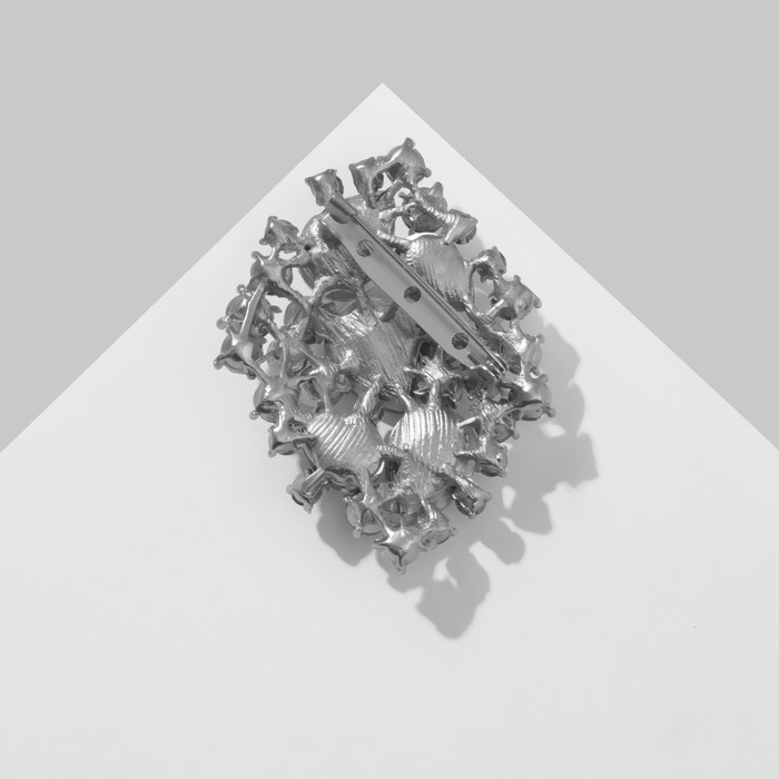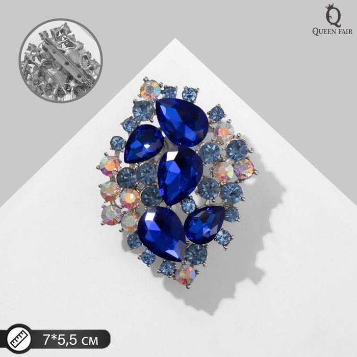 Длина броши 5,5 см делает её заметным, но не перегружающим элементом образа. Она легко крепится на лацкан пиджака, платье, шарф или сумку, добавляя изысканности и утончённости. Серебристая фурнитура подчёркивает холодное сияние камней, создавая гармоничную композицию, которая уместна как в повседневной жизни, так и на торжественных мероприятиях.