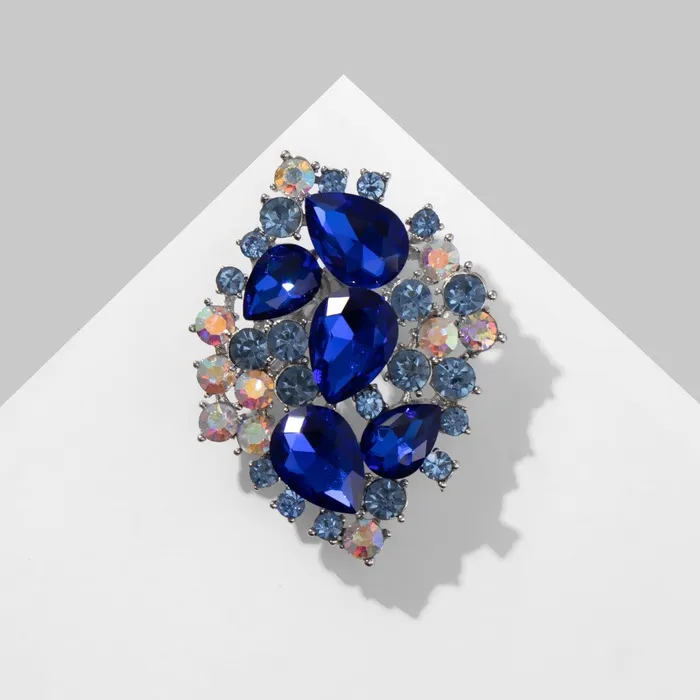 Сложная игра света, насыщенные цвета и благородный блеск серебра — эта брошь создана для тех, кто ценит выразительные детали и стремится подчеркнуть свою индивидуальность. Эффектные каплевидные вставки из стекла и стразов в синих и разноцветных тонах придают украшению глубину и королевское очарование, достойное императорского стиля.