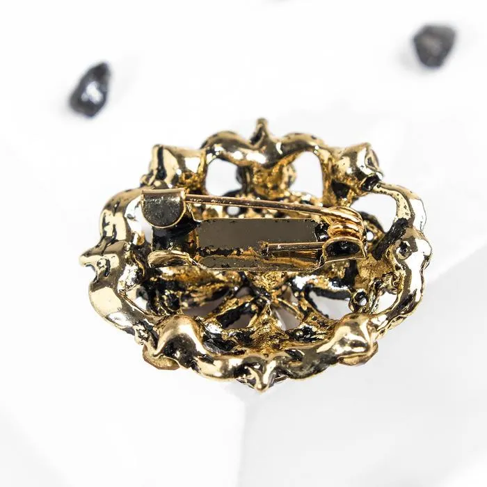 - Высококачественные материалы: металлическое основание с чернёным золотом придаёт броши глубокий, насыщенный оттенок, подчеркивая её статус и элегантность.