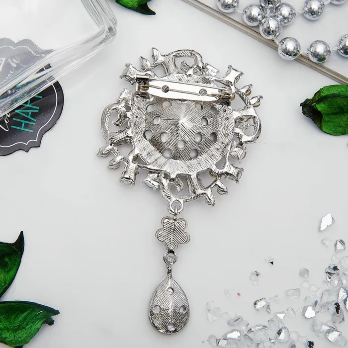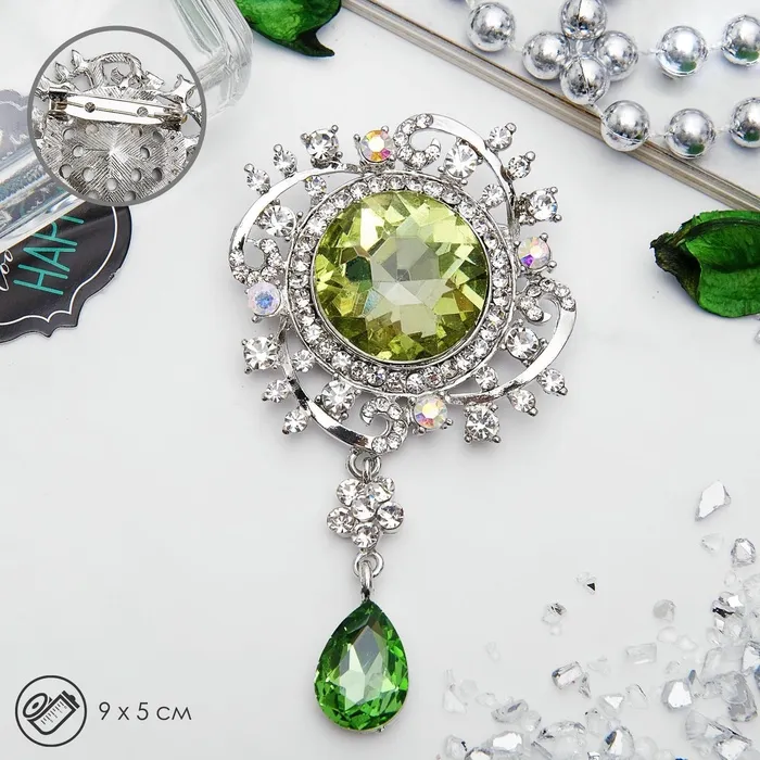 Эта брошь не только привлекает внимание своим дизайном, но и обладает высококачественными материалами, такими как металл и стразы. Размер в 9 см делает её заметной, но не слишком громоздкой, что позволяет легко носить её как на повседневной основе, так и на особые случаи.