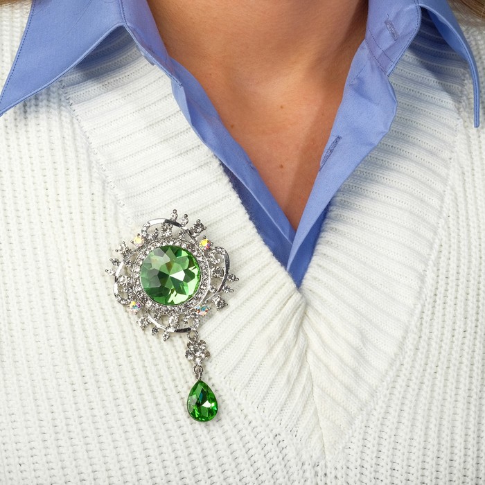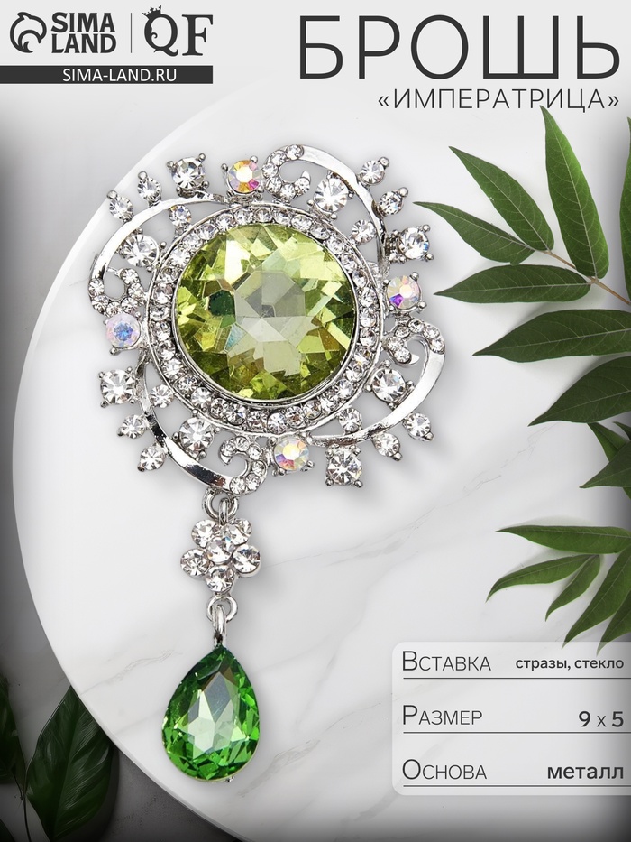 Брошь «Императрица» круг, бело-зелёная в серебре — Характеристики