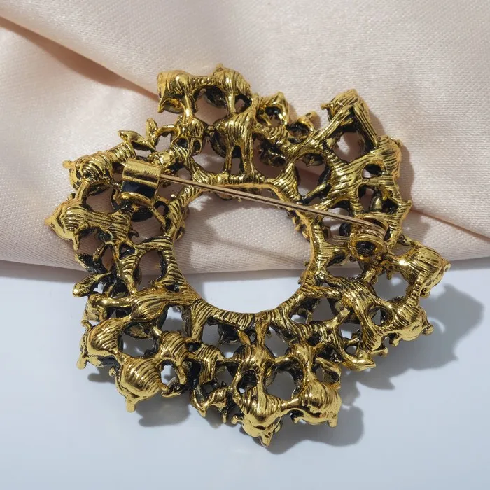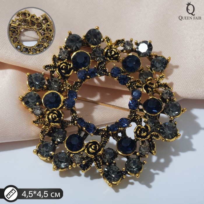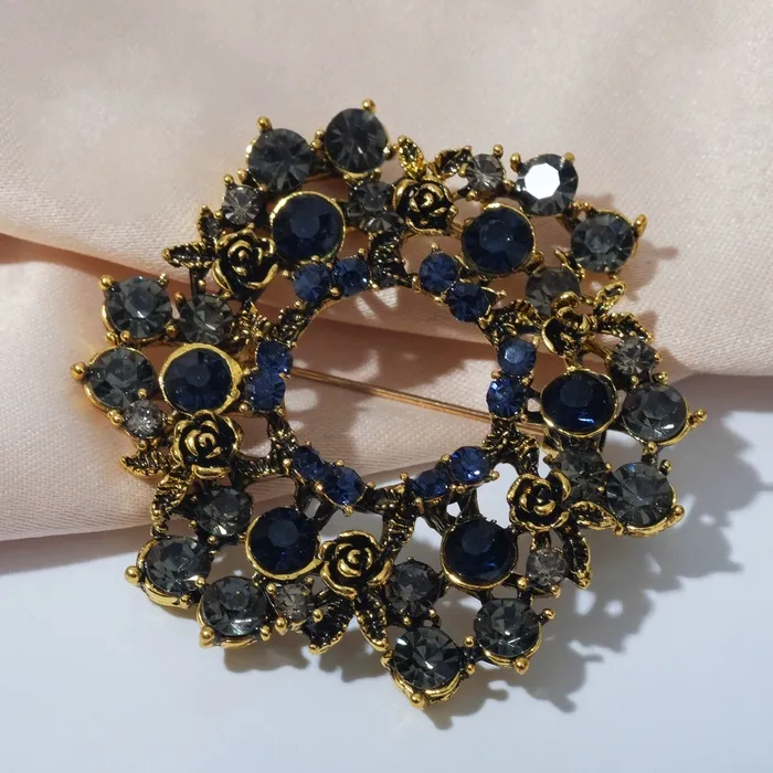 Брошь «Императрица» круг с розами, серо-синяя в чернёном золоте — Характеристики