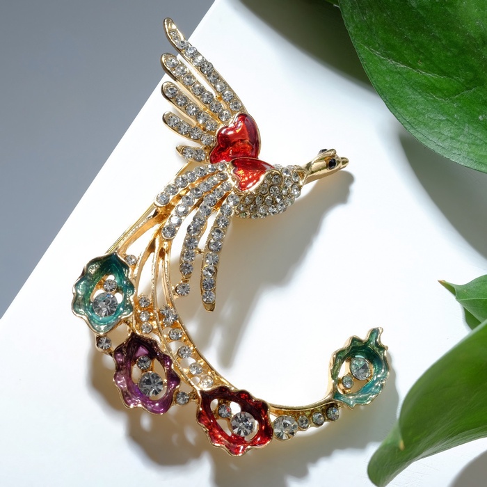 Брошь «Императрица» сердце цветущее, цвет красный в золоте — Характеристики