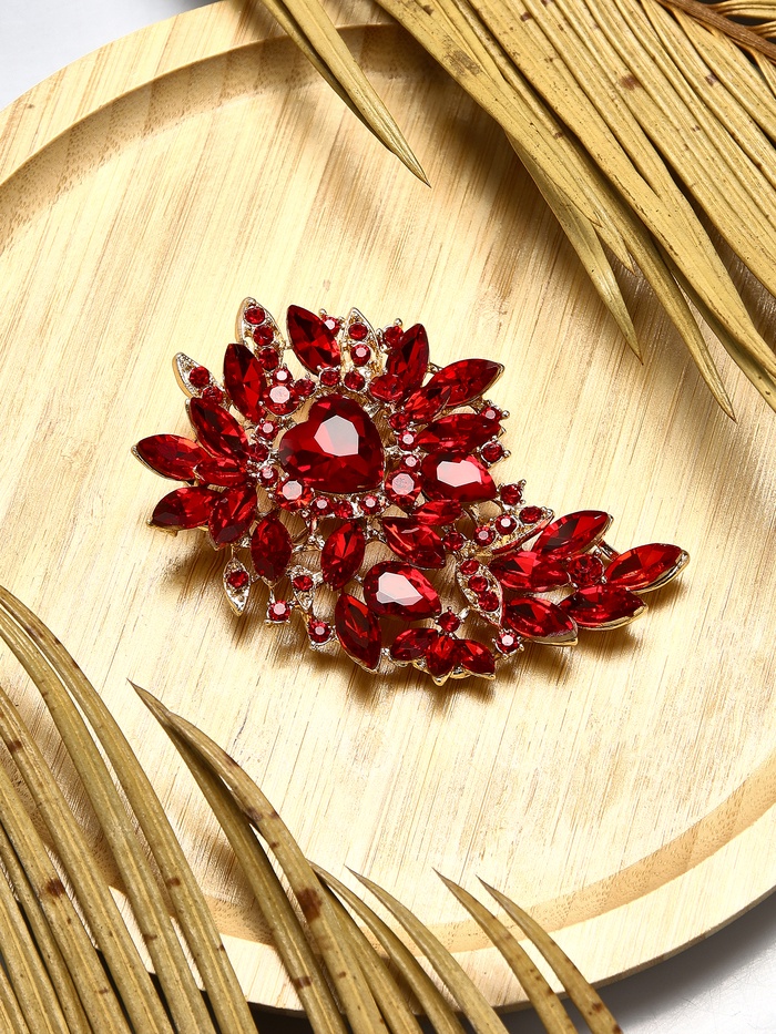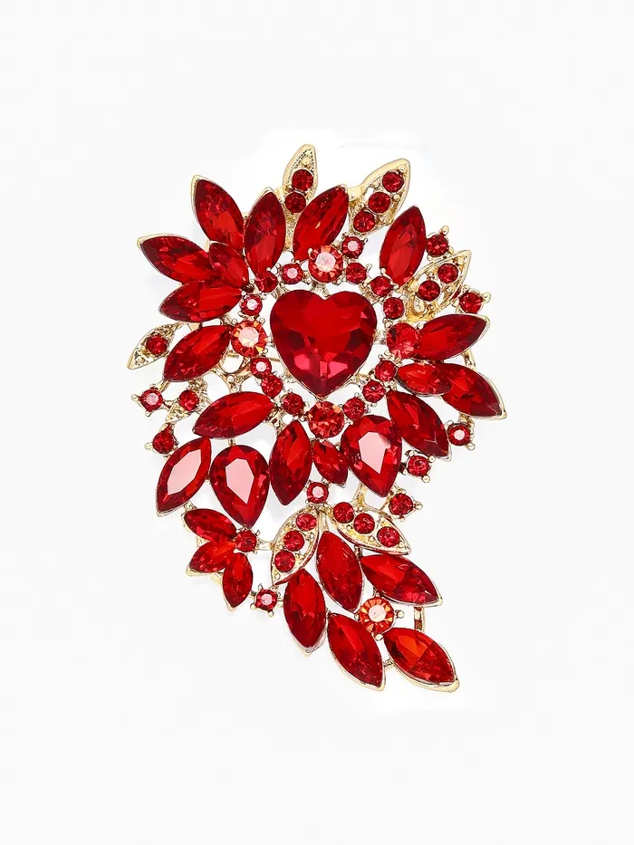 Элегантная брошь в форме цветущего сердца, выполненная в насыщенном красном цвете с золотистой фурнитурой, — это изысканный аксессуар, который добавит нотку романтики и винтажного шарма в любой образ. Металлическая основа сочетается с вставками из страз и стекла, создавая игру света и глубину, что делает изделие не только стильным, но и долговечным. Размер 9,2 см позволяет легко интегрировать брошь в повседневные и праздничные наряды.
